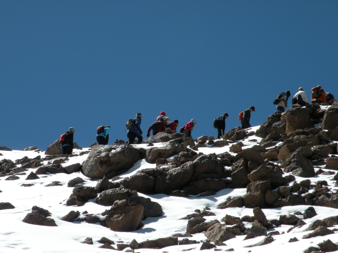As we got closer to the top, the climb became more technical. I settled my body into a deep-breathing pattern and tried to coach a few a few girls through the same. The kids marched on in near silence, each one focused on the summit and his or her own pains.