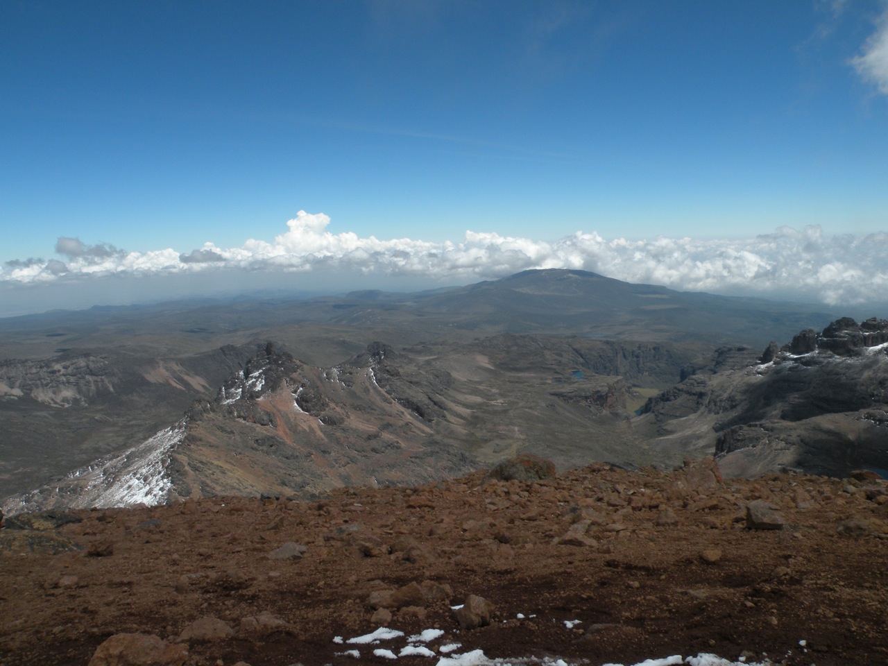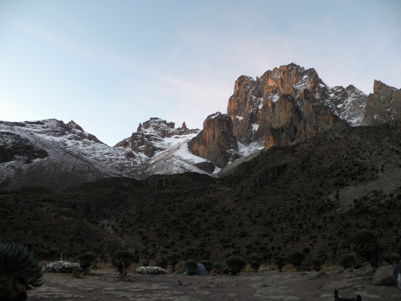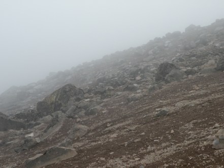 I don’t have many pictures from the descent. Within the first hour, my headache doubled and the nausea set in. As we groped and slid our way down icy paths, I was awed by the skill of our guides. With their full packs on, they would perch along the edge of the trail, help us around rough spots, and keep us from sliding down towards the glacier below. They kept reassuring us that the physical effects of the altitude would wear off as we descended – Lord, let it be true. When we took our first extended break at a sheltered camp site, I sat with my head resting on the end of my walking stick, every inch of me focused on not throwing up.