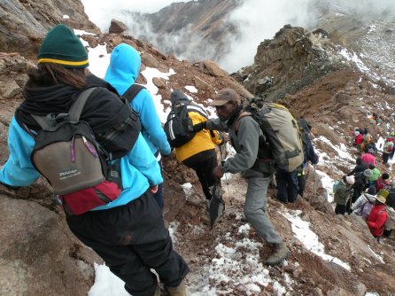 “Mwalimu … mwalimu … we must be going.” I must have lost consciousness for a bit. The voice of one of the guides cut through my upside-down dream world. Still slightly green, I joined the kids and we continued: four more hours of almost straight down-hill trekking through a freezing fog.
