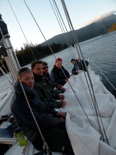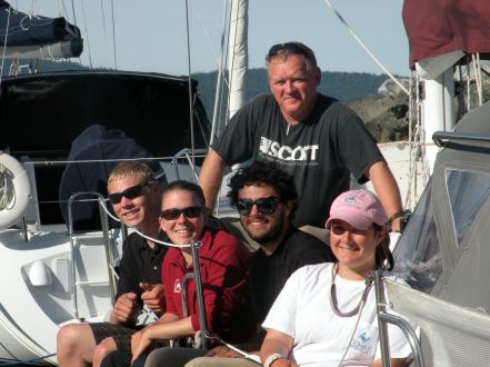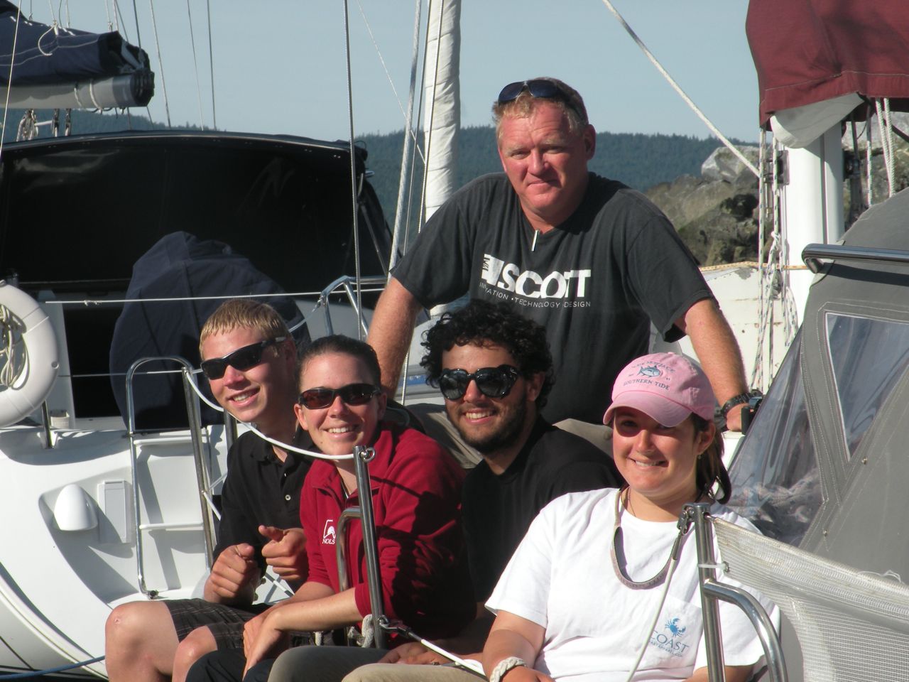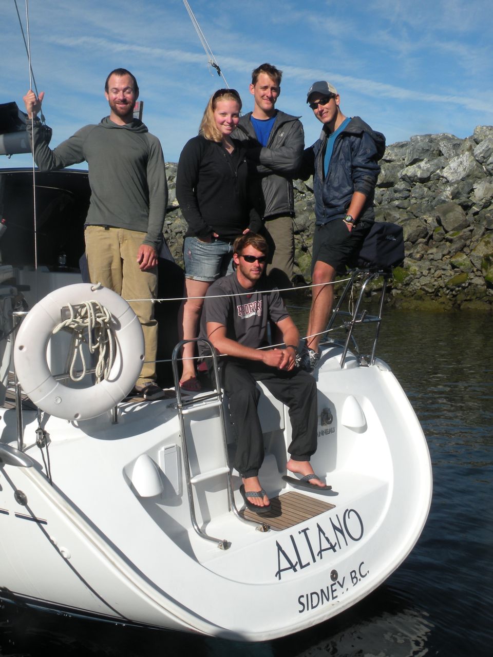 The crew of Altano – instructor Ken with Emily, Will, Nate, and Chris (seated)