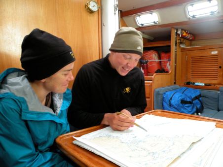 Below: Kalen and me working on some navigation calculations.