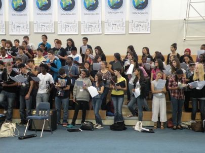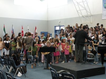 My students had never before sung in such a large group (150 kids), nor with that many kids who all love singing. They had never sung such hard music, and certainly not to such a high standard of excellence. They had never sung in Arabic. They had never worked with a university-level conductor. They had never spent so many straight hours in rehearsal (about 15 total). They had never sung for such a large audience (about 500-600.) I was overjoyed afterward when almost all of them said that it was the most amazing musical experience they had ever had. Here are a few pics of the rehearsals and the concert.