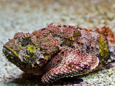 Breathing underwater is an amazing sensation. Not to mention getting to see all the really cool fish. My instructor seemed to have eagle eyes – he could spot a stone fish on any color of reef. I would have glided right over the thing, but he would pause, swish some water at it and help me see it was there. Quite cool. If you’ve never spotted a stone fish yourself, here’s a pic that I did not take: (Thanks amazing-pictures.blogspot.com)