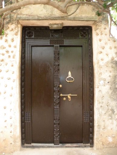 Lamu town and Shellah (where we stayed) are two cities built in the old Swahili style. Swahili culture is a mix of African and Arab cultures. The towns reminded me a lot of Moroccan medinas – narrow streets with tall houses built side by side. Only, everything is made out of coral stone and wood, and the carving style is different. The doors in these towns are often very beautiful. Or very interesting. I took a lot of door pics, but I’ll only share a couple here.