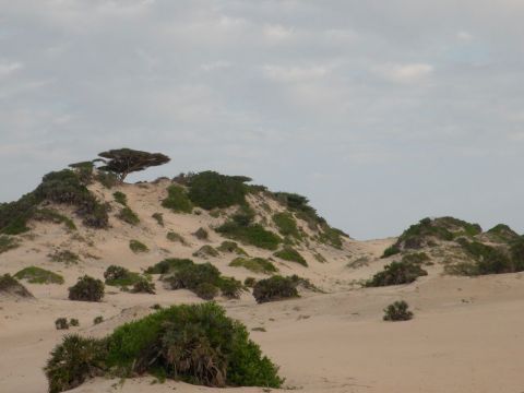 There are some pretty high dunes all along the island. This is on the southeastern tip. I hiked up to the tree on the top there.