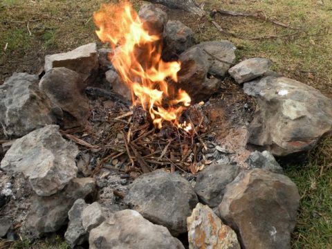2. If you have an nice fire going in the fire pit and it starts to rain, use some stones to cover the fire temporarily (without smothering the fire). The fire will heat the stones and the rain will evaporate off of them. Then, when it’s done raining, you can use a good stick to push the stones back where they belong, and you can throw more wood on the fire. Of course, don’t forget to tuck the extra wood under a tarp or something so that it too stays relatively dry.