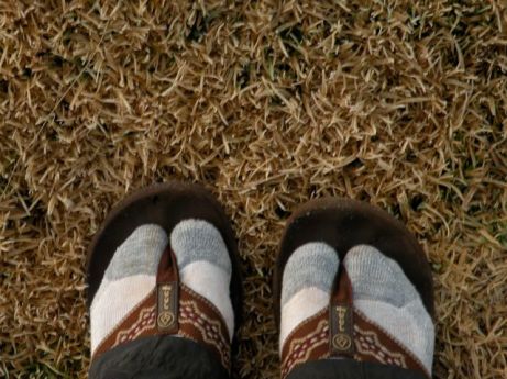 These were the shoes I brought to use around camp. But those are not my socks. Jon kindly lent me an extra pair of cotton socks he had brought. Sadly, this little set-up was warmer (barely) than the shoes I had brought for hiking.