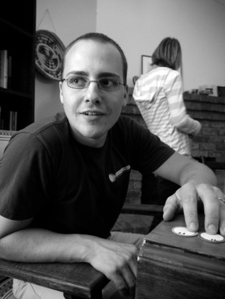 Aaron at “Wits and Wagers”.  I was playing with my new camera and took this one on the monochrome setting.
