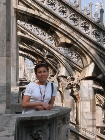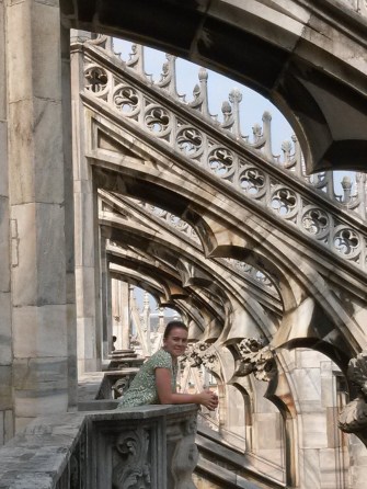 Shuwen, beneath the buttresses of Milan’s Duomo.