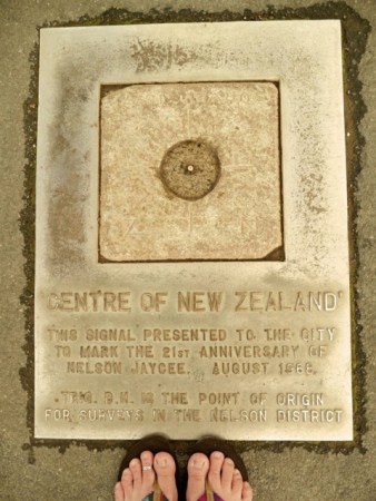 We drove north to the town of Nelson which just so happens to be the geographic center of NZ (whatever that means). We hiked up a hill to this spot – Bruce, me, and 8-month pregnant Lee. She’s amazing.