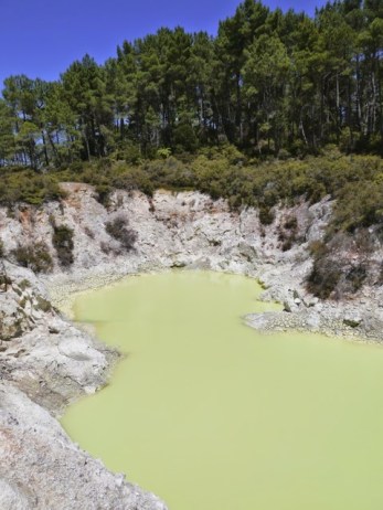 Some of the biggest geothermal parks are on the north island, near the town of Rotarura. I spent an entire day hiking two different parks. Boiling mud is amazing. Stinky … but amazing.