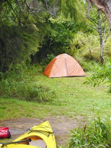Mosquito Bay. This stunning cove and camp site can only be reached (comfortably) by boat. The tour guide had intended for us to camp here only one night. A fierce storm blew up in the night though, and we almost had to be “rescued” by a water taxi service. Half our tents were flattened or torn by the wind.