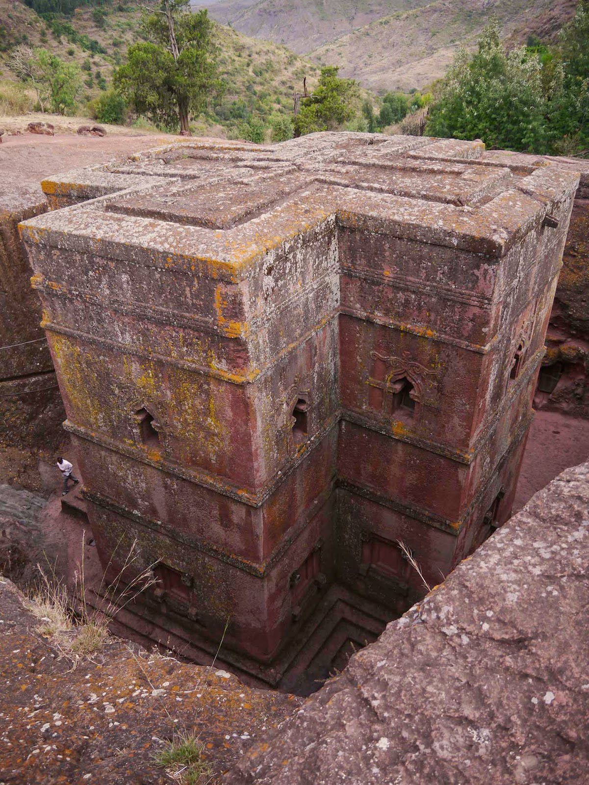 This is one of the better-preserved free-standing churches. You can see though how 1000+ years of rain have worn down the top level. Now that it is a UNESCO World Heritage Site, there is a shelter to protect it from the sun and rain.