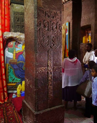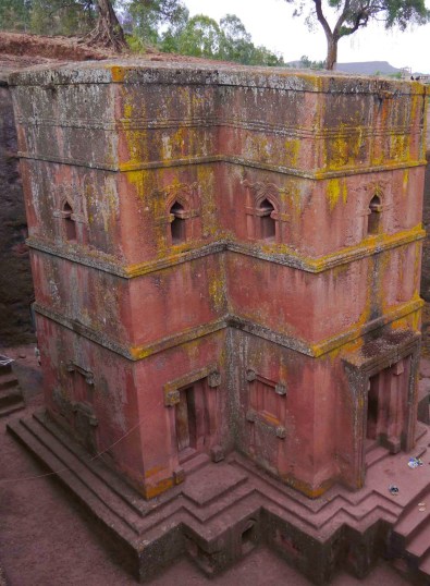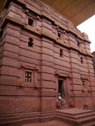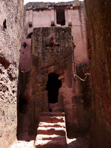 The churches at Lalibela are all carved down into the rock. They are single pieces of stone that have been excavated rather than built. Many of the churches are connected by underground tunnels and narrow alleys.