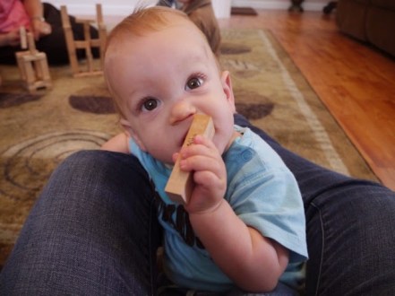 Jerome WEEKS – nephew #4, cuttin’ teeth on a Jenga block.