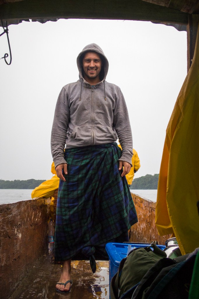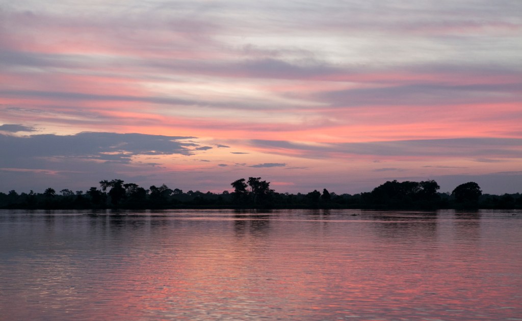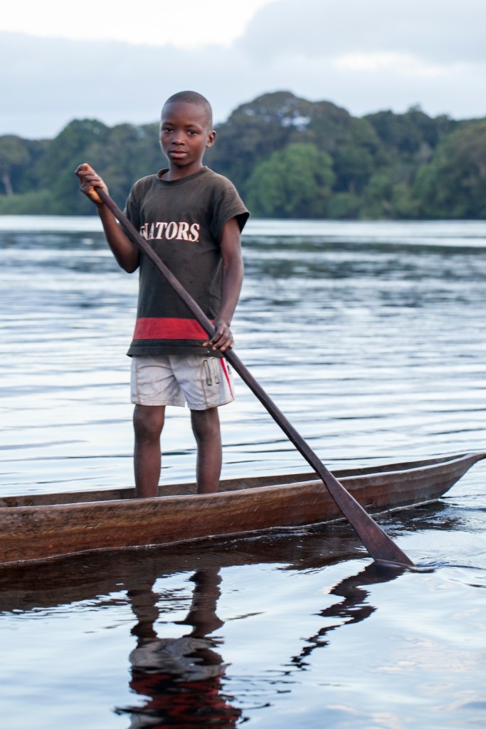 One of my dad’s main projects is to manage and oversee the restoration of about 600 kilometers of road through the jungle. These are old dirt roads that are used for trade between villages. After years of official neglect, heavy use, and many tropical rainstorms, the roads have been washed out by water, torn up by trucks, and overgrown by the forest. Dad wanted to show us what his teams have been doing for the last few months, so we went on a four-day road & water trip. We spent two days driving inland by land cruiser, and then another two days floating home by canoe. Yes, we spent almost 48 hours in a canoe that was about three feet wide and twenty-five feet long.
